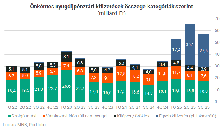 A 2025-ös év esetében nem mehetünk el szó nélkül a rendkívüli lakáscélú felhasználhatóság ügye mellett: egy éven keresztül, gazdaságélénkítési célzattal különféle lakáscélokra is ki lehetett venni az önkéntes nyugdíjpénztári megtakarításokat, a legfrissebb ismert adatok szerint az első 9 hónapban a pénztártagok kevesebb mint 5%-a, kb. 47 ezer fő élt ezzel a lehetőséggel.